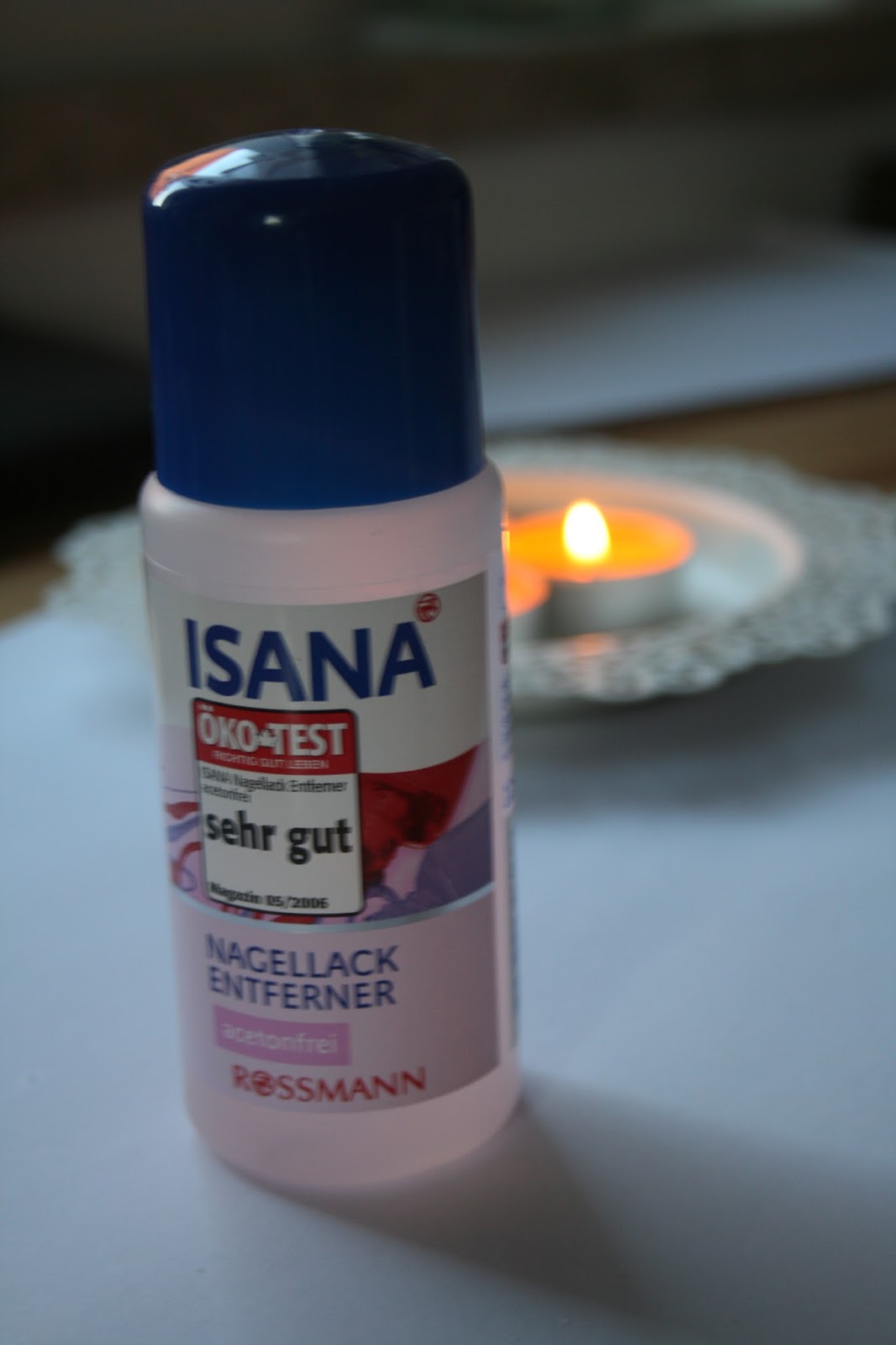 Und natürlich Nagellackentferner. Den von Isana finde ich nicht sonderlich gut, aber er tut seinen Zweck. Ich benutze ihn zu Ende und kaufe mir dann einen anderen.